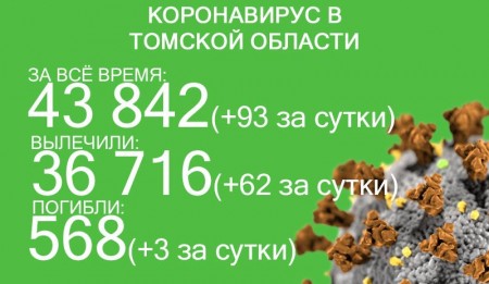 В Томской области по состоянию на 2 октября зарегистрировано 43 842 случая заражения коронавирусом. За минувшие сутки заболевание выявили у 93 жителей региона. С начала эпидемии излечились 36 716 жителей области. 62 пациента выздоровели за сутки с 1 по 2 октября.
