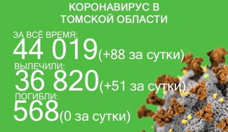 В Томской области по состоянию на 4 октября зарегистрировано 44 019 случаев заражения коронавирусом. В минувшие сутки заболевание выявили у 88 человек. С начала эпидемии излечились 36 820 человек. 51 пациент выздоровел за сутки с 3 по 4 откября.