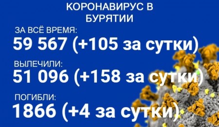 По данным на 6 октября, еще 105 человек в Бурятии заболели COVID-19. Также за сутки 158 пациентов выздоровели, четверо скончались. Об этом сообщает пресс-служба регионального Роспотребнадзора. В настоящее время лечение в стационарах проходят 596 человек с коронавирусом и подозрением на него.