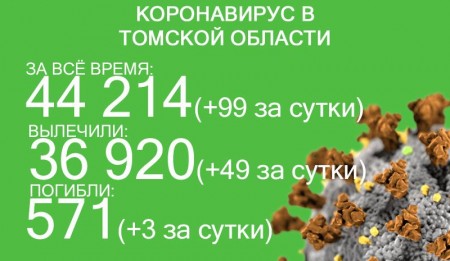 В Томской области по состоянию на 6 откября зарегистрировано 44 214 случаев коронавируса. У 99 жителей региона заболевание выявили в минувшие сутки. С начала эпидемии от коронавируса излечились 36 920 человек. 49 пациентов выздоровели в минувшие сутки.