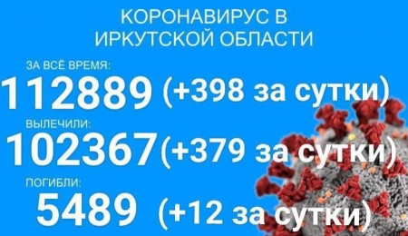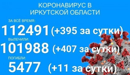 По данным оперштаба Иркутской области на 9 октября, в регионе официально зарегистрировано 112889 подтверждённых случаев заболевания коронавирусом. Прирост за сутки составил 398 человек. В больницах находится 3213 человек. За сутки число госпитализированных увеличилось на 109 человек.