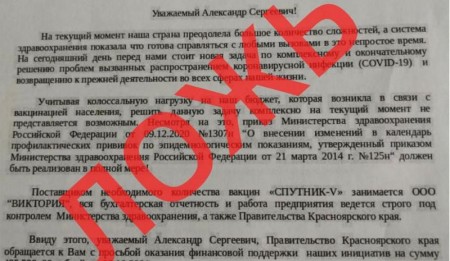 Оперштаб по коронавирусу Красноярского края 8 октября предупредил о мошенниках, которые выманивают деньги якобы на покупку вакцины для региона. Преступники рассылают письма в предприятия региона от имени заместителя председателя правительства Красноярского края.