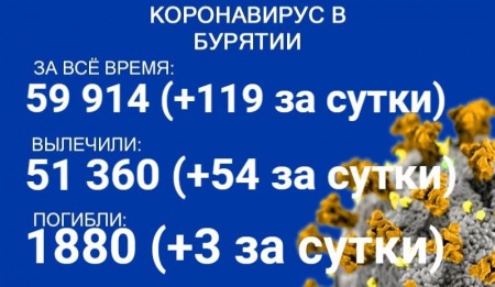 По данным на 9 октября, еще 119 человек в Бурятии заболели COVID-19. Также за сутки 54 пациента выздоровели, трое скончались. Об этом сообщает пресс-служба регионального Роспотребнадзора. В настоящее время лечение в стационарах проходят 632 человека с коронавирусом и подозрением на него.