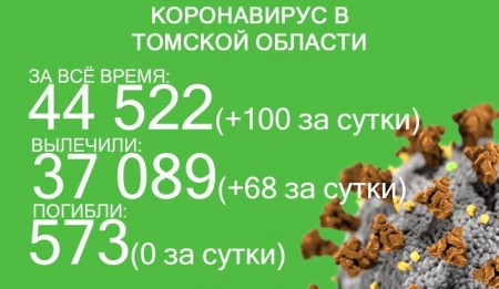 В Томской области по состоянию на 9 октября зарегистрировано 44 522 случая заражения коронавирусом. За минувшие сутки заболевание выявили у 100 жителей региона. С начала эпидемии излечились 37 089 жителей области. 68 пациентов выздоровели за сутки с 8 по 9 октября.