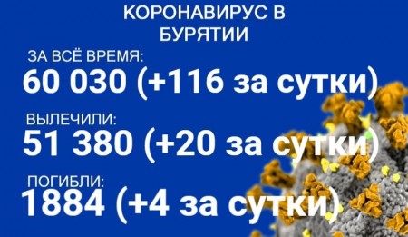По данным на 10 октября, еще 116 человек в Бурятии заболели COVID-19. Также за сутки 20 пациентов выздоровели, четверо скончались. Об этом сообщает пресс-служба регионального Роспотребнадзора. В настоящее время лечение в стационарах проходят 670 человека с коронавирусом и подозрением на него.