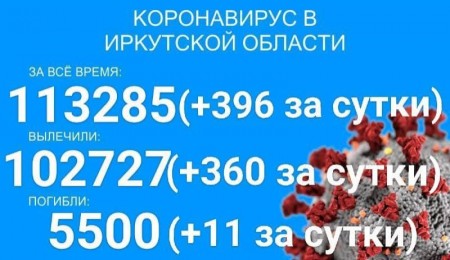 По данным оперштаба Иркутской области на 10 октября, в регионе зарегистрировано 113285 официально подтверждённых тестами ПЦР случаев заражения коронавирусом. Прирост за сутки составил 396 вновь заразившихся. 3349 человек находится в ковидных стационарах, за сутки их число выросло на 136 человек.