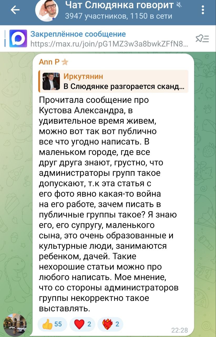 По мнению наблюдателей и лиц, приближенных к конфликту, участвует в противостоянии и депутат Заксобрания Федор Саломатов, видящий в эсеровском лидере (то есть Кустове) угрозу на предстоящих выборах в Госдуму. Сам Кустов, конечно, в такую «высокую» политику не метит, но вполне может дать стране угля, то есть попить крови и обрушить и без того незавидный уровень поддержки Единой России в Слюдянском районе. Да это будет и несложно, с учетом того, что из себя представляет один из главных лидеров местных единороссов в лице Шульца.