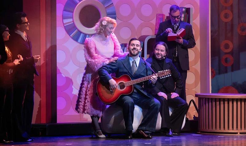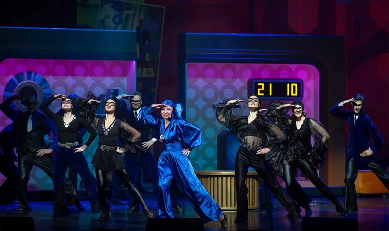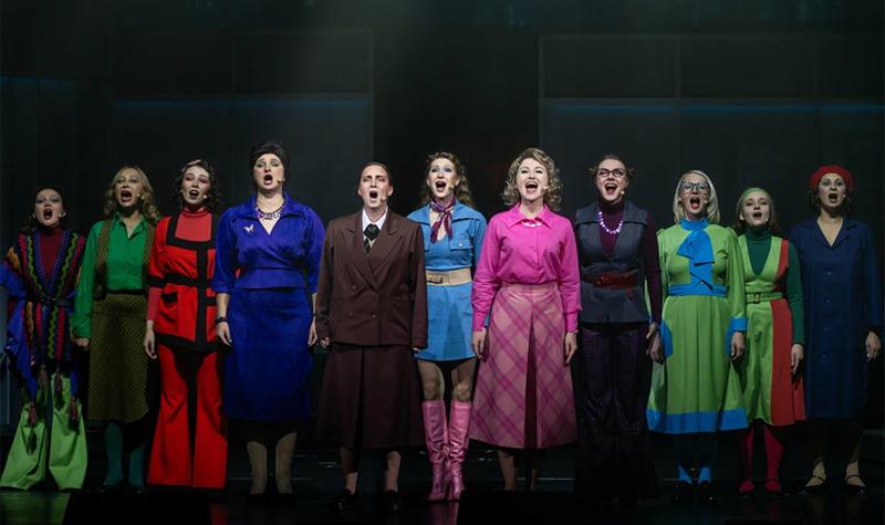 Сценография Ольги Грицаевой яркая и стильная, но больше подошла бы к фантастическому мюзиклу по сюжету каких-нибудь Стругацких, а не к производственной мелодраме эпохи соцреализма. По этой же причине карикатурно выглядят вставные элементы из 1970‑х: шнуровые телефоны, настольные калькуляторы, гранёные стаканы и наградные вымпелы. В какое время попал зритель? Да какая разница.