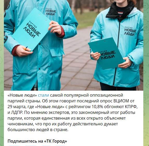 ВЦИОМ на днях насчитал, что «Новые люди» стали «самой популярной оппозиционной партией страны». А именно, обошли в рейтинге народных предпочтений КПРФ и ЛДПР.