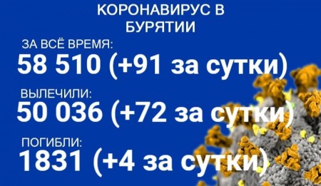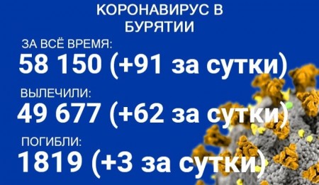 По данным на 21 сентября, еще 91 человек в Бурятии заболел COVID-19. Также за сутки 62 пациента выздоровели, трое скончались. Об этом сообщает пресс-служба регионального Роспотребнадзора. В настоящее время лечение в стационарах проходят 413 человек с коронавирусом и подозрением на него.