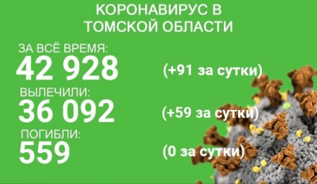 По состоянию на 22 сентября в Томской области выявлено 42 928 случаев новой коронавирусной инфекции, у 91 человека заболевание зарегистрировано в минувшие сутки. С начала эпидемии излечились 36 092 жителя региона, 59 человек из них выздоровели за сутки с 21 по 22 сентября.