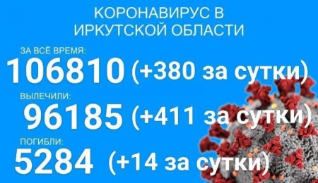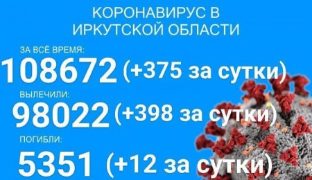По данным оперштаба Иркутской области на утро 22 сентября, в регионе официально зарегистрировано 106430 подтверждённых тестами ПЦР случаев заболевания коронавирусом. За сутки выявлено 374 новых случаев, из них один вахтовик и 46 детей. Всего в Прибайкалье болеет коронавирусом 435 детей.