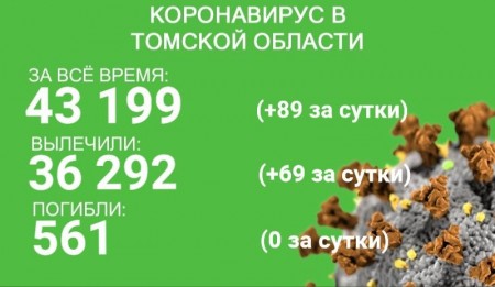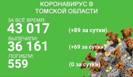В Томской области по состоянию на 25 сентября зарегистрировано 43 199 случаев новой коронавирусной инфекции. У 89 жителей региона заболевание выявили в минувшие сутки. С начала эпидемии излечились 36 292 жителя региона. 69 пациентов выздоровели за сутки с 24 по 25 сентября.