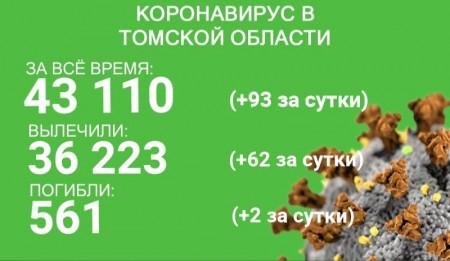 В Томской области за сутки с 23 по 24 сентября коронавирус зарегистрировали у 93 человек. Всего в регионе выявлено 43 110 случаев заболевания. С начала эпидемии излечились 36 223 человека, 62 из них выздоровели за минувшие сутки.