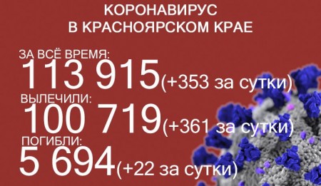 К 24 сентября коронавирусом заразились 113 915 жителей края, суточный прирост – 353. 100 719 человек уже выздоровели, в том числе 361 за последние сутки. Количество погибших увеличилось до 5694, скончалось 22 больных коронавирусом.