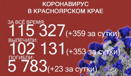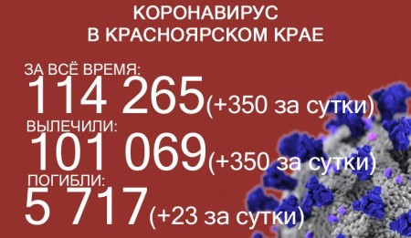 По данным на 25 сентября, в Красноярском крае 114 265 случаев заражения коронавирусом. За последние сутки выявили 350 новых случаев. За всё время выздоровело 101 069 человек, в том числе 350 за последние сутки. Количество погибших достигло 5717. Скончалось ещё 23 пациента с COVID-19.