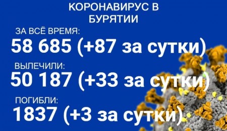 По данным на 27 сентября, еще 87 человек в Бурятии заболели COVID-19. Также за сутки 33 пациента выздоровели, трое скончались. Об этом сообщает пресс-служба регионального Роспотребнадзора. В настоящее время лечение в стационарах проходят 478 человек с коронавирусом и подозрением на него.