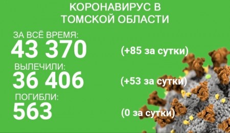 В Томской области по состоянию на 27 сентября зарегистрировано 43 370 случаев коронавируса. В минувшие сутки заболевание выявили у 85 человек. С начала эпидемии излечились 36 406 человек. 53 пациента выздоровели за сутки с 26 по 27 сентября.