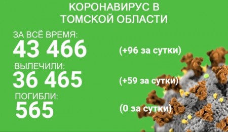 В Томской области коронавирус зарегистрирован у 43 466 жителей. У 96 человек заболевание выявили за сутки с 27 по 28 сентября. С начала эпидемии от коронавируса излечились 36 465 человек. 59 пациентов выздоровели в минувшие сутки.