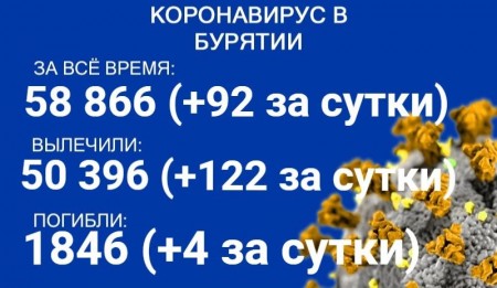 По данным на 29 сентября, еще 92 человека в Бурятии заболели COVID-19. Также за сутки 122 пациента выздоровели, четверо скончались. Об этом сообщает пресс-служба регионального Роспотребнадзора. В настоящее время лечение в стационарах проходят 486 человек с коронавирусом и подозрением на него.