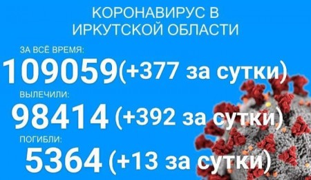 По данным оперштаба Иркутской области на утро 29 сентября, в регионе официально зарегистрировано 109059 подтверждённых тестами ПЦР случаев заболевания коронавирусом. За последние сутки было выявлено 377 новых случаев.