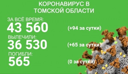 В Томской области по состоянию на 29 сентября зарегистрировано 43 560 случаев коронавируса. У 94 жителей региона заболевание выявили в минувшие сутки. С начала эпидемии от коронавируса излечились 36 530 человек. 65 пациентов выздоровели в минувшие сутки.