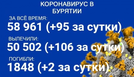 По данным на 30 сентября, еще 95 человек в Бурятии заболели COVID-19. Также за сутки 106 пациентов выздоровели, двое скончались. Об этом сообщает пресс-служба регионального Роспотребнадзора. В настоящее время лечение в стационарах проходят 503 человека с коронавирусом и подозрением на него.