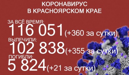 К 30 сентября COVID-19 заразился 116 051 житель края, суточный прирост – 360. 102 838 человек уже выздоровели, в том числе 355 за последние сутки. Количество погибших увеличилось до 5824, скончался ещё 21 больной коронавирусом.