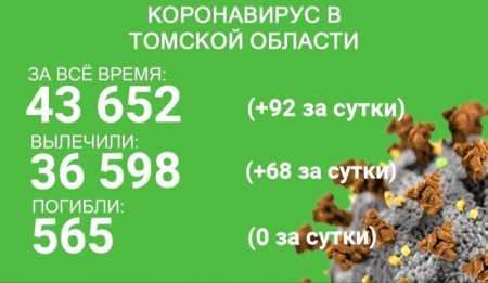 В Томской области за сутки с 29 по 30 сентября коронавирус выявили у 92 человек. За все время заболевание зарегистрировано у 43 652 жителей региона. С начала эпидемии излечились 36 598 человек, 68 из них выздоровели в минувшие сутки. В регионе от COVID-19 и его последствий погибли 565 человек.
