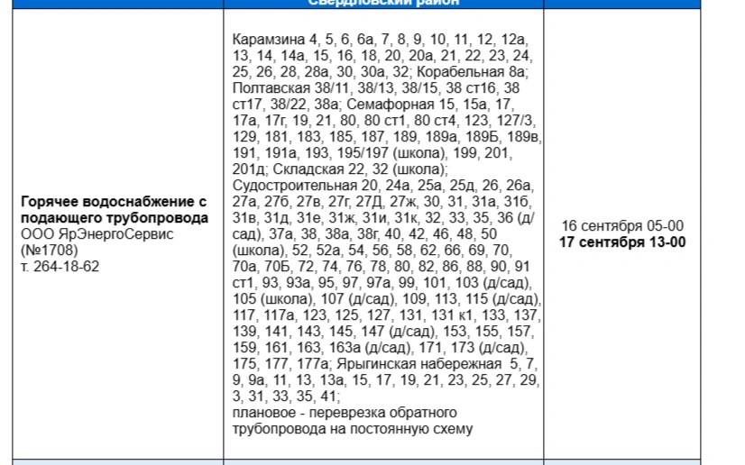 Согласно информации диспетчерской службы, восстановить подачу планируют только к 13:00 17 сентября. Причиной назвали перевод трубопровода на постоянную схему.