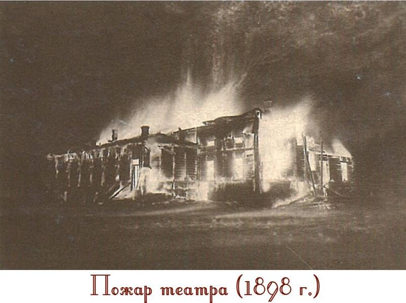 В ночь с 14 на 15 октября 1898 года здание театра сгорело дотла. Официальная причина пожара неизвестна, однако незадолго до происшествия свечное освещение поменяли на электрическое. Красноярцы не желали оставаться без театра и начали сбор денег на строительство нового здания, на этот раз каменного. Его решили построить на Воскресенской улице (ныне проспект Мира).