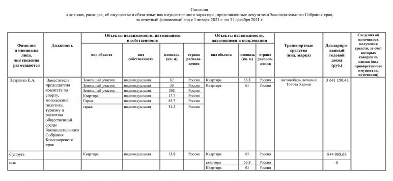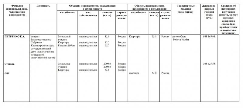 За годы парламентской деятельности Петренко увеличил свой денежный доход без малого в четыре раза (с 900 с лишним тысяч рублей до 3,6 миллиона рублей), а также обзавелся новой квартирой и земельным участком. Однако всю доступную широкой общественности депутатскую жизнь Евгений Петренко был верен своей «Тойоте Харриер».