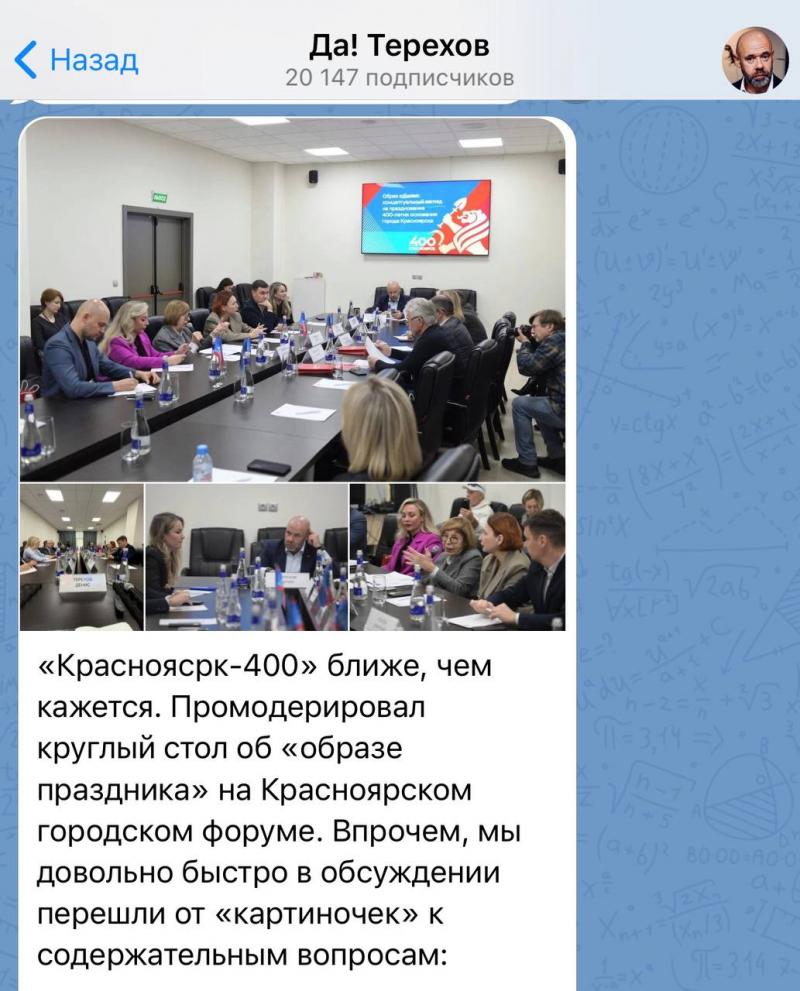«Красноясрк-400» ближе, чем кажется. Промодерировал круглый стол об «образе праздника» на Красноярском городском форуме. Впрочем, мы довольно быстро в обсуждении перешли от «картиночек» к содержательным вопросам: