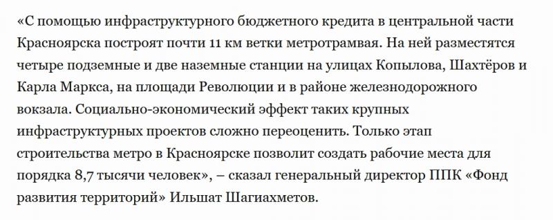 Ещё цитата: «На объекты метро ежедневно выходят не менее 1000 человек». Круто, но федеральная власть нам говорила, что на строительстве метро будет создано 8700 рабочих мест. За Северным шоссе построен вахтовый городок для метростроителей на 4500 мест. А теперь нас уверяют, что 1000 человек — это достаточно. Ну-ну.