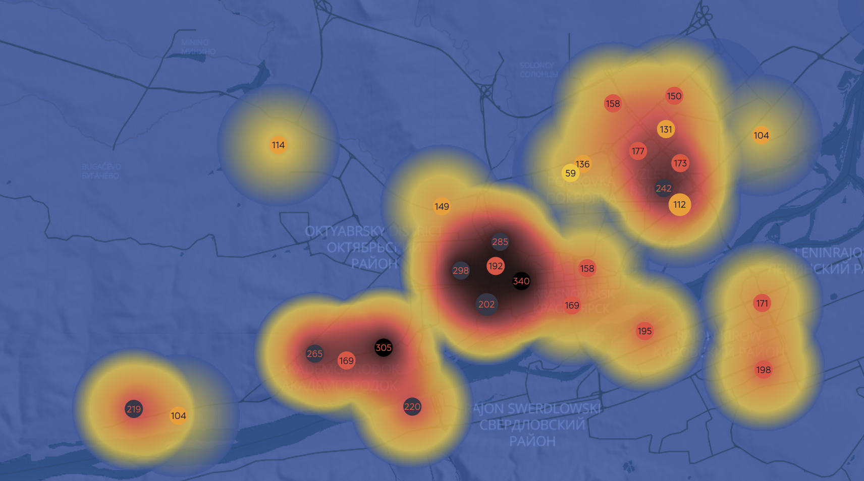 По данным проекта nebo.live, днем 20 января наиболее тяжелая обстановка складывается в Кировском, Железнодорожном, Октябрьском, Советском, Центральном и Свердловском районах.