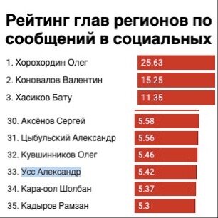 Замеры тональности социальных сетей в отношении глав регионов Центр политической конъюнктуры делал и в октябре 2020 года. Александр Усс по доле позитивных сообщений в социальных сетях тогда оказался на 80 месте (из 85 в совокупности). Сложно назвать это место почётным.