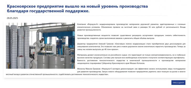 Ещё у семьи есть фирма «Формула-К», которая делает краски и лаки. Эта фирма в 2023 году получила из бюджета края льготный кредит в 56 миллионов рублей. Такие кредиты край даёт производителям на развитие производства под 3-6%, в то время как кредиты для бизнеса в банках обычно в разы дороже. В 2025 году «Формула-К» отчиталась, что модернизировала производство (без особых подробностей).