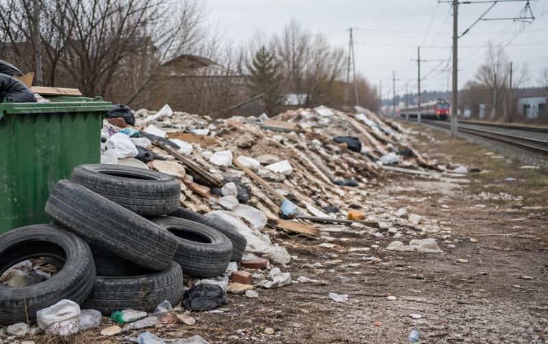 Тем временем в городе продолжают находить стихийные свалки. Одна из таких — в Центральном районе, буквально в нескольких десятках метров от железной дороги. Строительный и бытовой мусор свален в кучу рядом с путями. Это уже не только про грязь. Это риск для движения поездов. Любой пожар или обрушение — и последствия могут быть совсем не бытовыми.