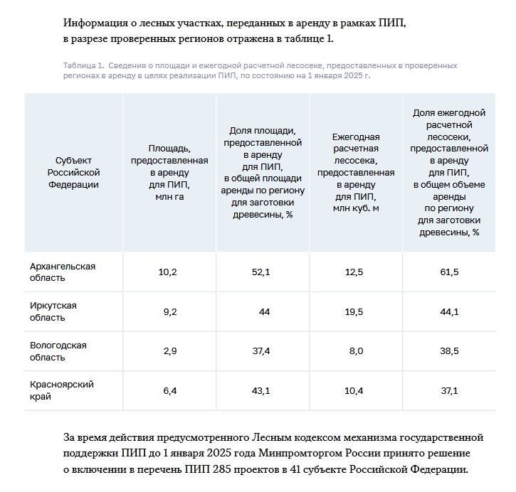 Суть ПИПов в том, что край даёт инвесторам крупные лесосеки в аренду по льготной цене на 49 лет. А инвесторы должны вложить деньги в модернизацию леспрома, создать новые рабочие места, а главное — вести глубокую переработку древесины (а не просто гнать сырьё в Китай).