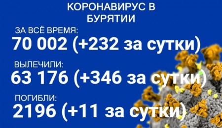 По данным на 8 декабря, еще 232 человека в Бурятии заболели COVID-19. Также за сутки 399 пациентов выздоровели, еще десять скончались. Об этом сообщает пресс-служба регионального Роспотребнадзора.