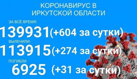 По данным оперштаба Иркутской области на 8 декабря, в регионе зарегистрировано 144137 официально подтверждённых тестами ПЦР случаев заболевания коронавирусом. Прирост за сутки составил 603 новых случая, в том числе 107 детей.