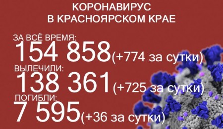 По данным на 8 декабря, в Красноярском крае 158 585 случаев заражения коронавирусом. За последние сутки выявили 766 заболевших. За всё время выздоровели 142 080 человек, в том числе 721 за последние сутки.