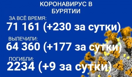 По данным на 6 декабря, еще 230 человек в Бурятии заболели COVID-19. Также за сутки 177 пациентов выздоровели, еще девять скончались. Об этом сообщает пресс-служба регионального Роспотребнадзора. В настоящее время лечение в стационарах проходят 1289 человек с коронавирусом и подозрением на него.