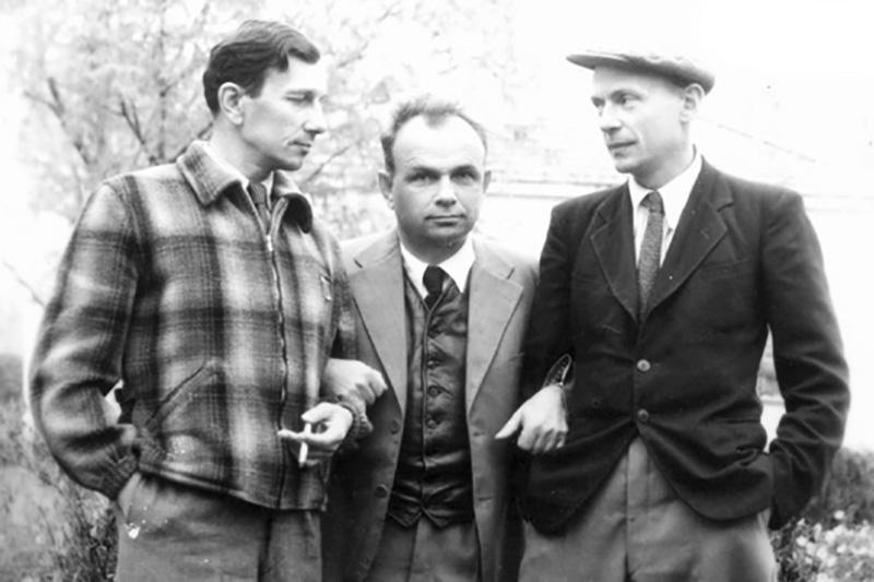 Николай Эрдман, Константин Юдин и Михаил Вольпин на съёмках фильма «Смелые люди», 1950 год