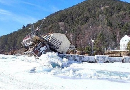 На Байкале в Больших Котах льдом снесло причал Лимнологического института, который простоял более 20 лет. Об этом в своём телеграм-канале написал директор Научно-исследовательского института биологии Максим Тимофеев. Причал был сделан на совесть: сруб из круглого бревна, заполнен камнями.