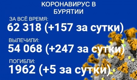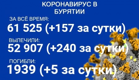 По данным на 21 октября, еще 157 человек в Бурятии заболели COVID-19. Также за сутки 240 пациентов выздоровели, пятеро скончались. Об этом сообщает пресс-служба регионального Роспотребнадзора. В настоящее время лечение в стационарах проходят 805 человек с коронавирусом и подозрением на него.