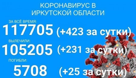 По данным оперштаба Иркутской области на утро 21 октября, в регионе официально зарегистрировано 117705 подтверждённых тестами ПЦР случаев заболевания коронавирусом. За сутки выявили 423 новых случая, в том числе семь вахтовиков и 67 детей.