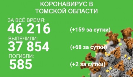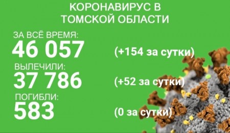 В Томской области по состоянию на 21 октября коронавирус зарегистрирован у 46 057 человек. У 154 жителей региона заболевание выявили в минувшие сутки. С начала эпидемии от COVID-19 излечились 37 786 человек, 52 пациента выздоровели за сутки с 20 по 21 октября.