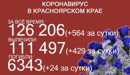 16 октября в Красноярском крае выявили 564 заболевших коронавирусом. Для региона это новый абсолютный рекорд, таких показателей не было ни разу с начала пандемии. Общее число заболевших достигло 126 206. За всё время выздоровело 111 497 человек, в том числе 429 за последние сутки.