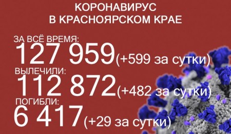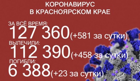 По данным на 18 октября, в Красноярском крае 127 360 случаев заражения коронавирусом. За последние сутки выявили 581 заболевшего, для региона это новый рекорд. За всё время выздоровели 112 390 человек, в том числе 458 за последние сутки.